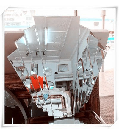 MODERN BEVELED EDGE FRAMELESS FAN ART MIRROR