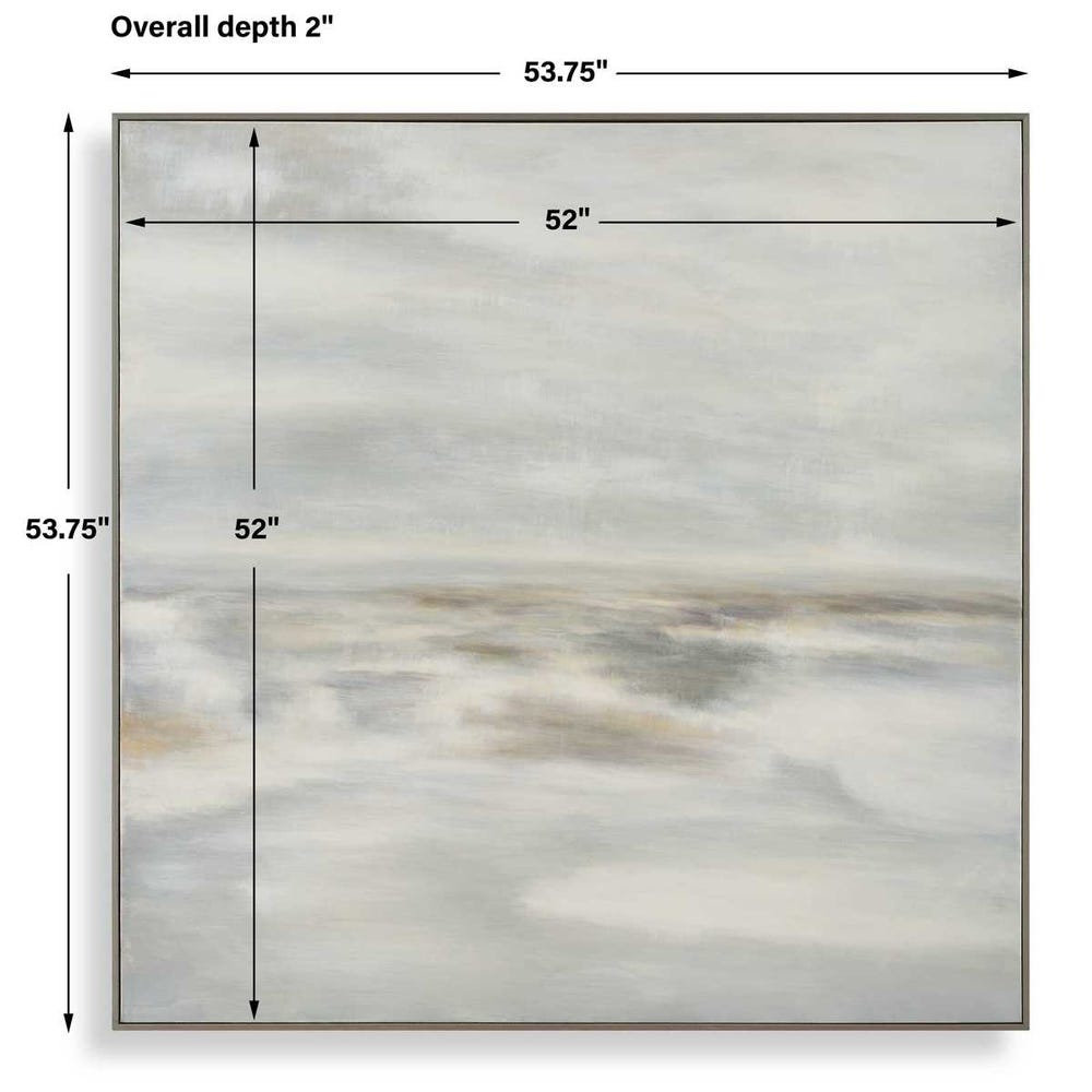 With its seamless blend of moody, earth tones in gray and beige, the Furthest Thing beckons the viewer to contemplate the unknown. This piece is surrounded by a thin, gray washed wooden frame. Due to the handcrafted nature of the artwork, each piece may have subtle differences.