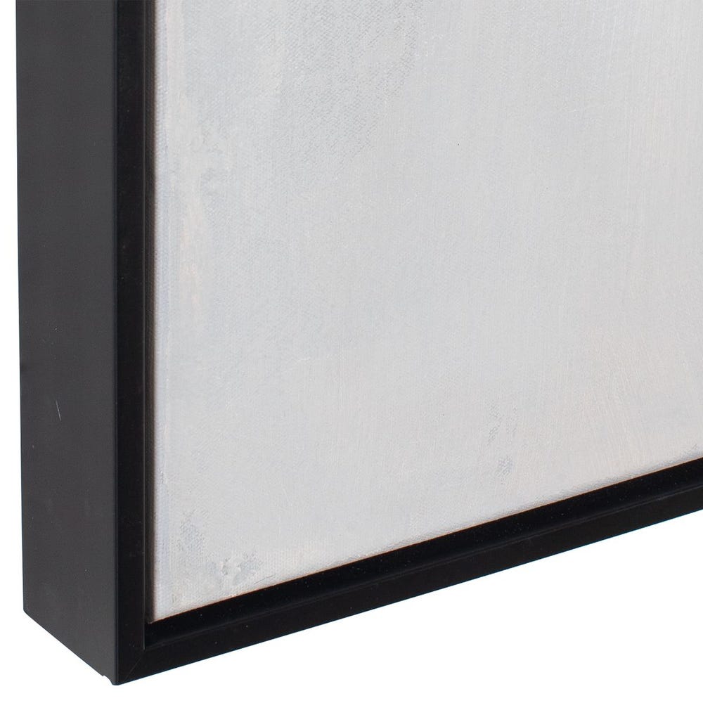 Heat of the Moment is an abstract painting that captures a burst of energy and emotion. Its composition is highlighted with bold strokes of black and burnt sienna against a plethora of muted grays, surrounded by a thin, black gallery frame. Due to the handcrafted nature of this artwork, each piece may have subtle differences.