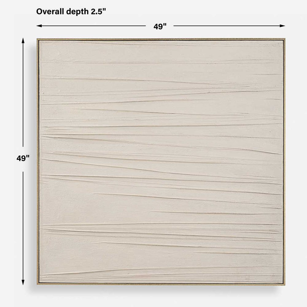 Walking The Line hand painted canvas is a minimalist design featuring subtle tone-on-tone hues and captivating horizontal texture, surrounded by a gold gallery frame. Due to the handcrafted nature of this work, each piece may have subtle differences.